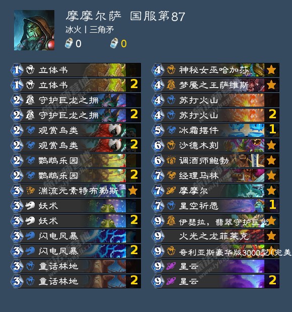 兜兜转转,摩摩尔萨的构筑核心问题又回到了经理马林的优化上。优化马林的逻辑是摩摩尔萨在当前环境中的定位应该是唯一一套可以同时好打控制卡组和跳水猪瞎的卡组,但经理马林在对上控制卡组时实在是有些不郎不秀的意思,三倍马林打不过基尔加丹的窘况时有发生……倒不如去换个过牌或是冰冠堡垒宣传单之类的抗快牌(我也不建议大家带护路者玛洛恩,因为玛洛恩在长盘对局中的表现可能还不如马林)。