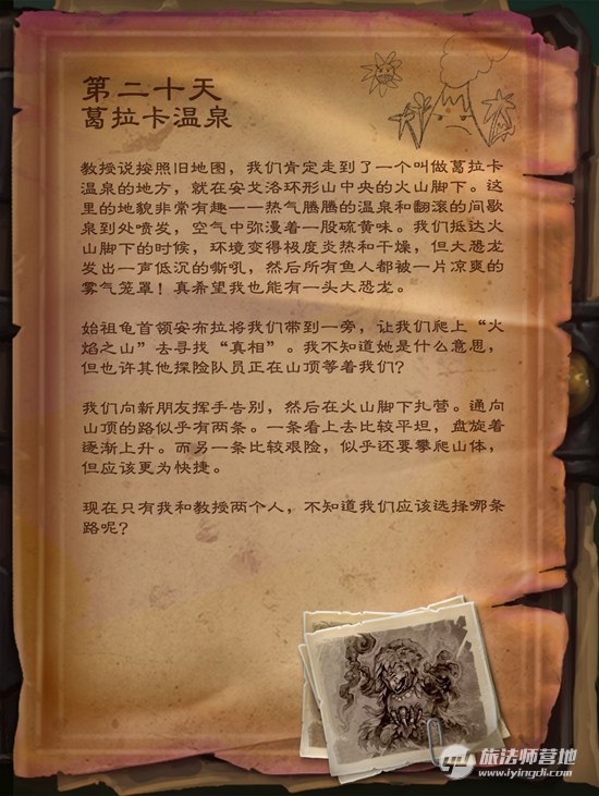 第5天。伊莉斯有个预感,失落之城就在葛拉卡温泉的深处。尼利潜了下去,发现了一个美丽的洞窟!也许鱼人不知道失落之城的入口,但它们身上肯定还有秘密。