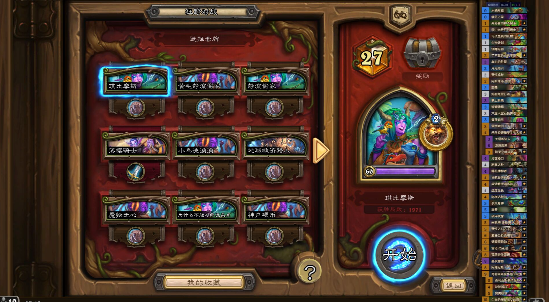 这些都是比谁胡的对局,总体势均力敌,可以尝试用野性印记卡对手节奏。除了机械哨兵外,都没有解的必要,请尽量走脸。