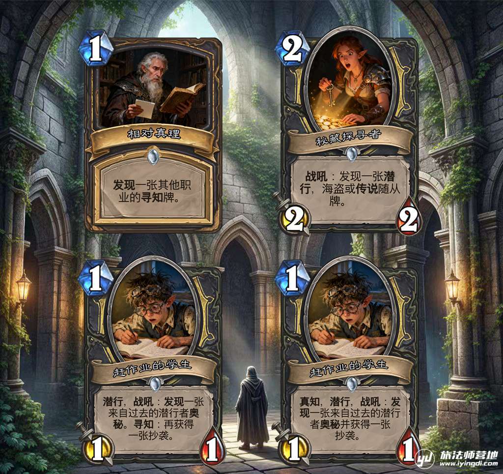 注:在你使用一张“寻知”牌后,将他的真知版本加入本场对战的“真知池”中。每当你需要在所有可收藏卡牌中检索时,比如随机获得、召唤随机随从或施放随机法术,会优先在“真知池”中检索。如果其中有卡牌被选中,则移出“真知池”。
