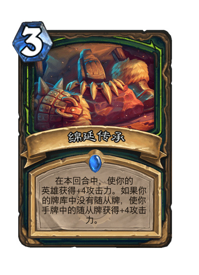 在本回合中,使你的英雄获得+4攻击力。如果你的牌库中没有随从牌,使你手牌中的随从牌获得+4攻击力。【以此为准,发布者错了,不是一张】
