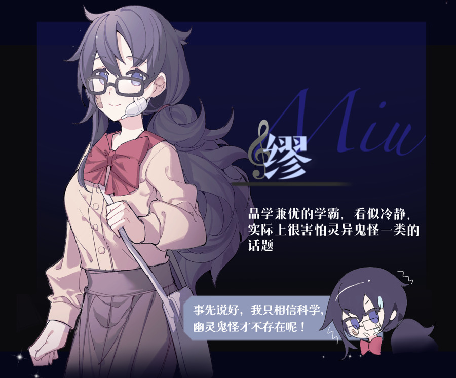 品学兼优的学霸。看似冷静,实际上很害怕怪谈灵异一类的话题。