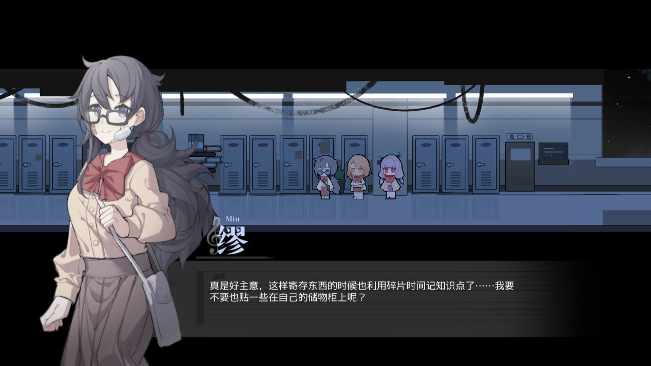 本作特色为多周目分视角叙事。在三个周目中,你将分别扮演缪、杜松子和沫沫,三位性格迥异的女高中生,从她们的视角体验试胆大会的惊险与刺激,同时逐步解开灵异事件背后的秘密。