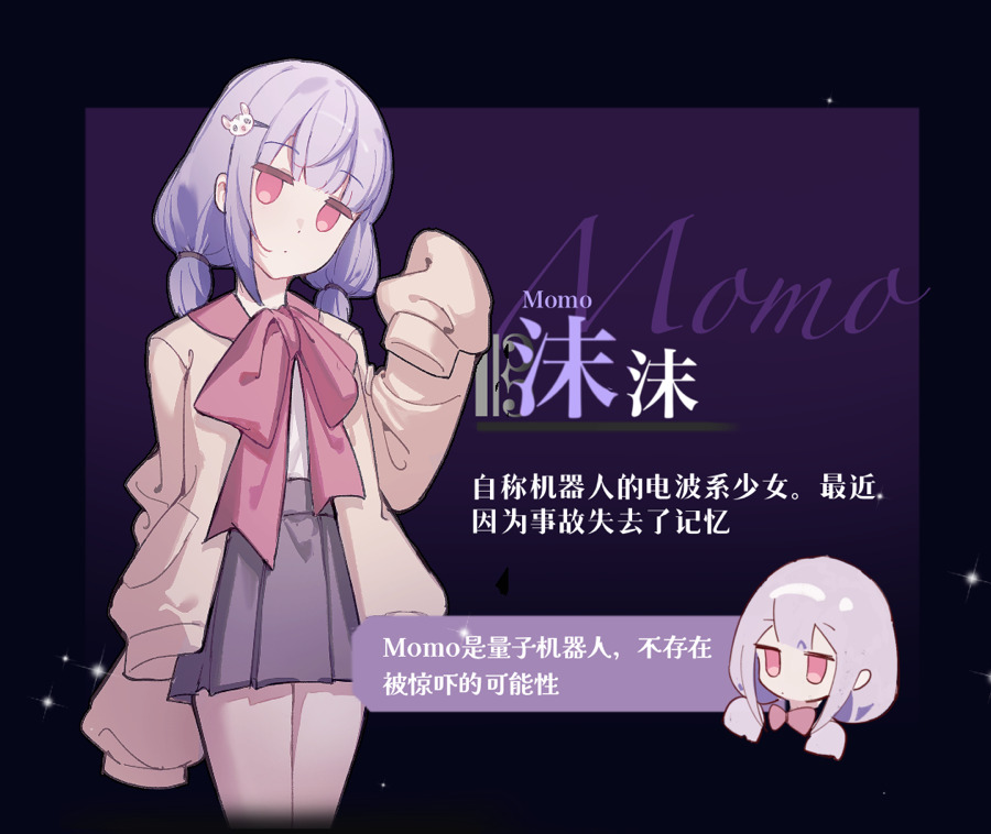 自称机器人的电波系少女,喜欢探究神秘事件。最近因为事故失去了记忆。