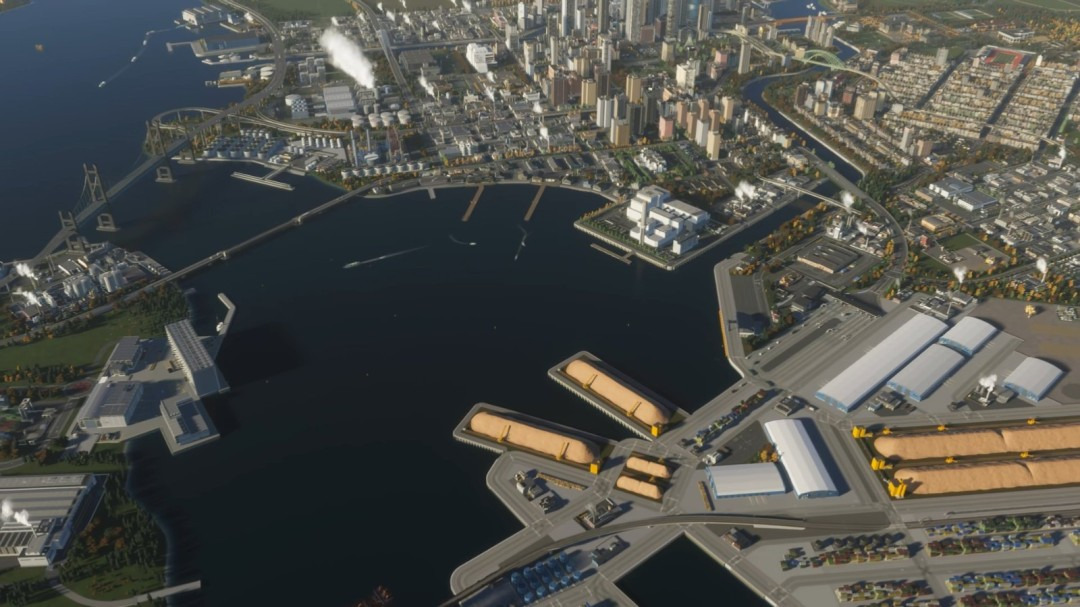 可自定义港口:三种不同尺寸的港口闸门供玩家选择,可按交通量规模扩展。港口可通过扩展和升级提升效率、安全性与保障能力。新增仓储设施、矿石堆场、客运码头、海关办公室及应急响应单位丰富了当地服务,同时港口博物馆和会议中心等选项吸引游客。