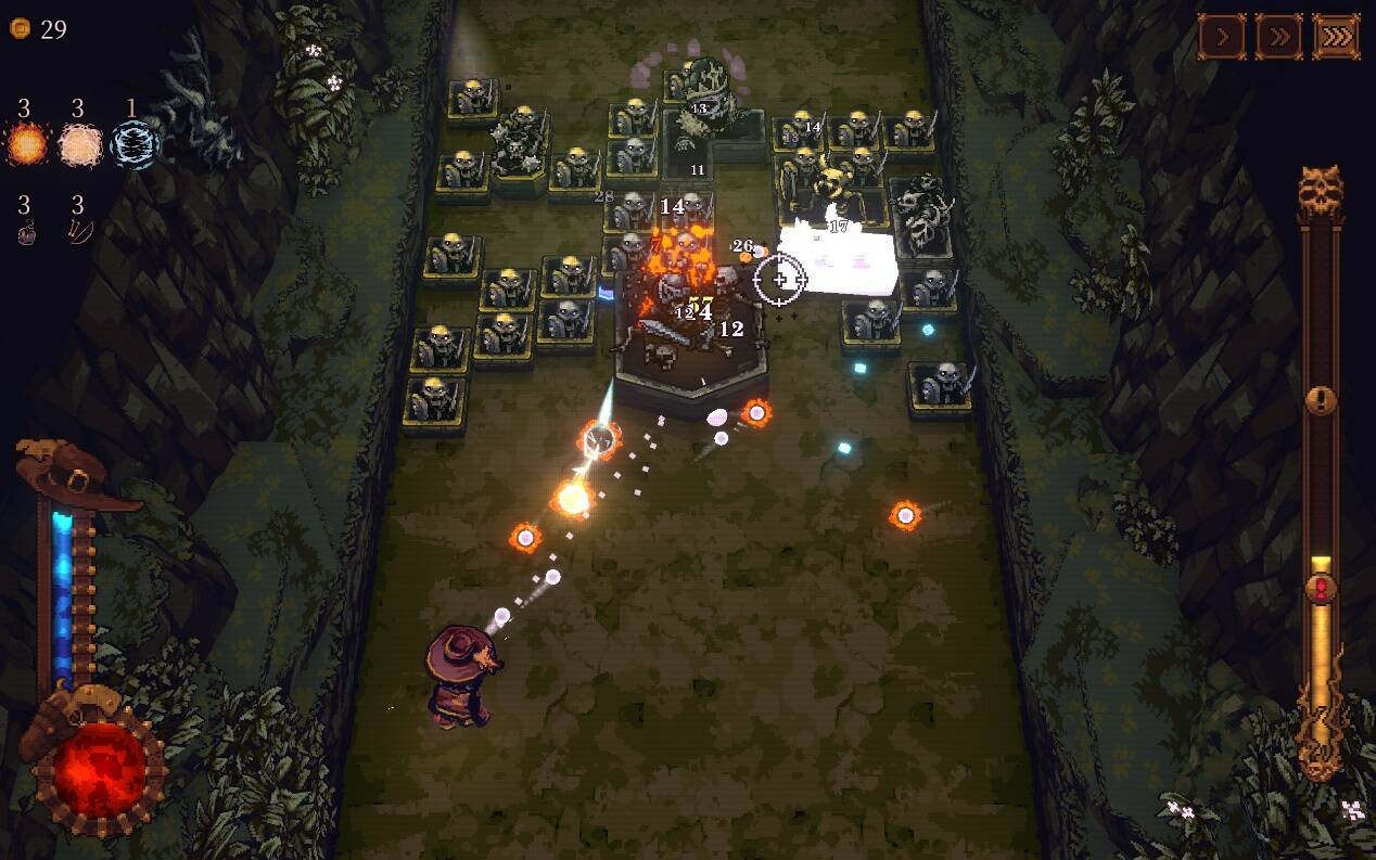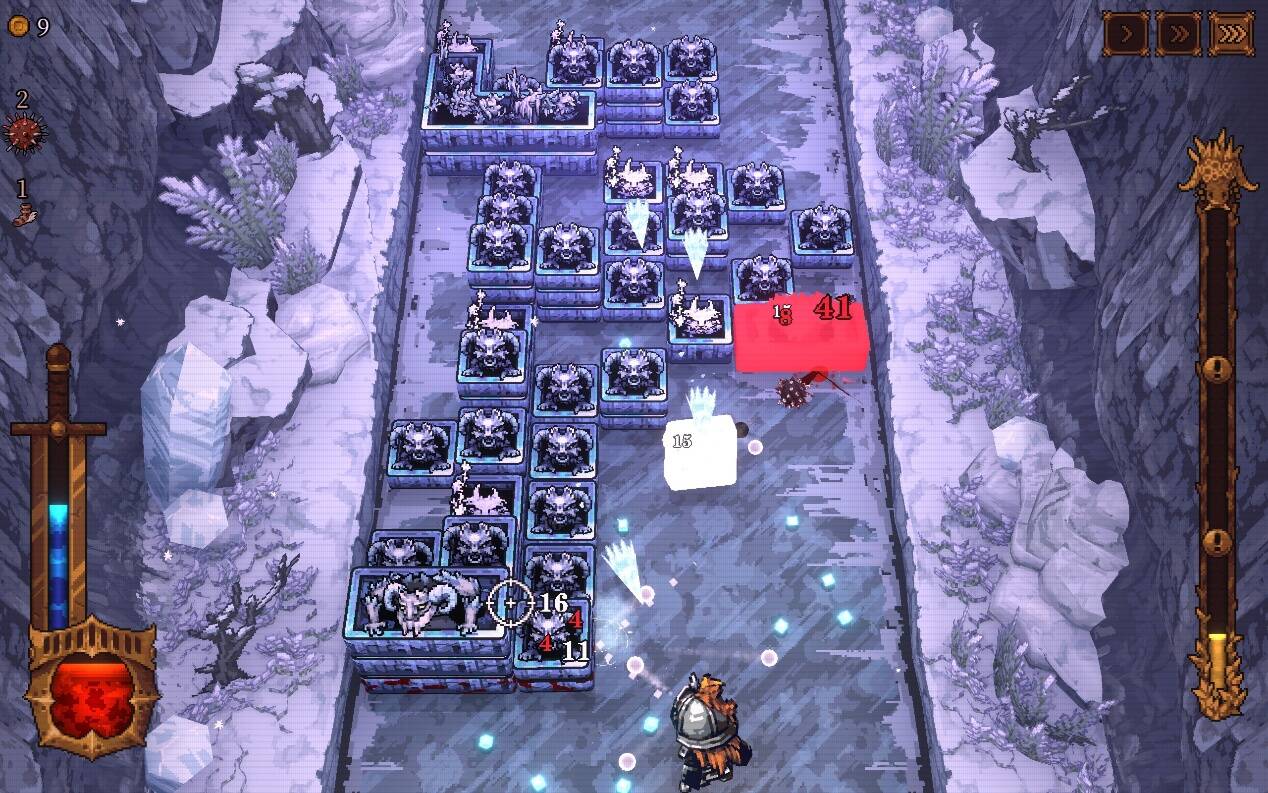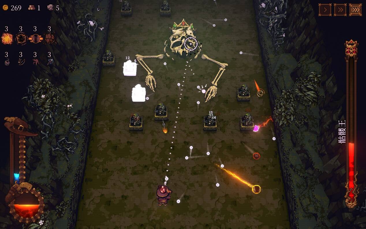 在局内的战斗中,玩家选定角色后,通过击杀怪物的形式提升等级,并在有限的4个弹珠栏位和4个物品栏中添加道具,形成独特的战斗流派。非BOSS怪物以砖块的厚度来反映自己的生命值,并在接触到底边后对玩家进行一次舍身攻击。