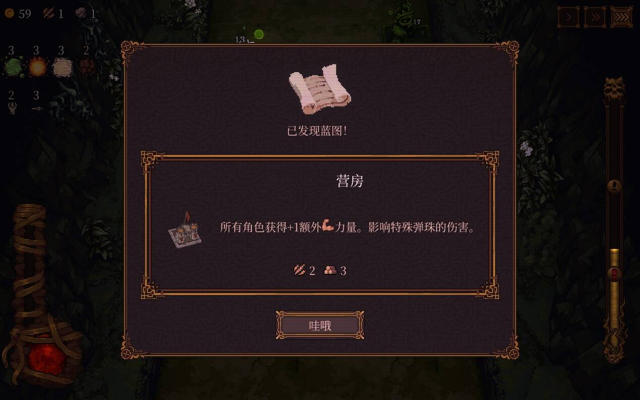 通过在对局中获取图纸,玩家将会解锁更多形式的建筑。这些建筑也提供了除资源之外的直接强化能力。