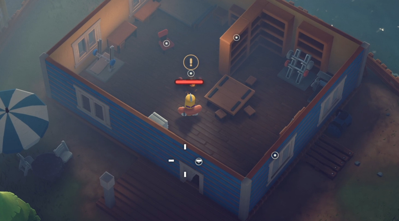 在玩家不断地将物品搬回家之后,如何合理的消耗掉玩家所收集的物资,以及提升玩家重复搜索的动力,基地建设环节便应运而生。玩家可以建造工作台、医疗站、健身房等等建筑,为基地添加各种商店和技能树。这些前来的鸭PC也会向玩家发布新的任务,并且在完成任务线后解锁新的奖励。