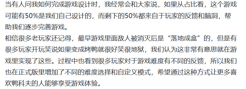 地图中的敌人同样也会随玩家进出地图而刷新,从呆头呆脑的无甲蓝色呆头鸭、红皮近战帮派鸭,到全副武装的黑色精英鸭,各式各类的敌人一旦形成了优势,玩家即便再好的装备,也只能抱头鼠窜。除开鸭形敌人外,还有移速超快的狗子,发射毒子弹的蘑菇等等特殊的敌人,从视野盲区突然杀出更是令人防不胜防。