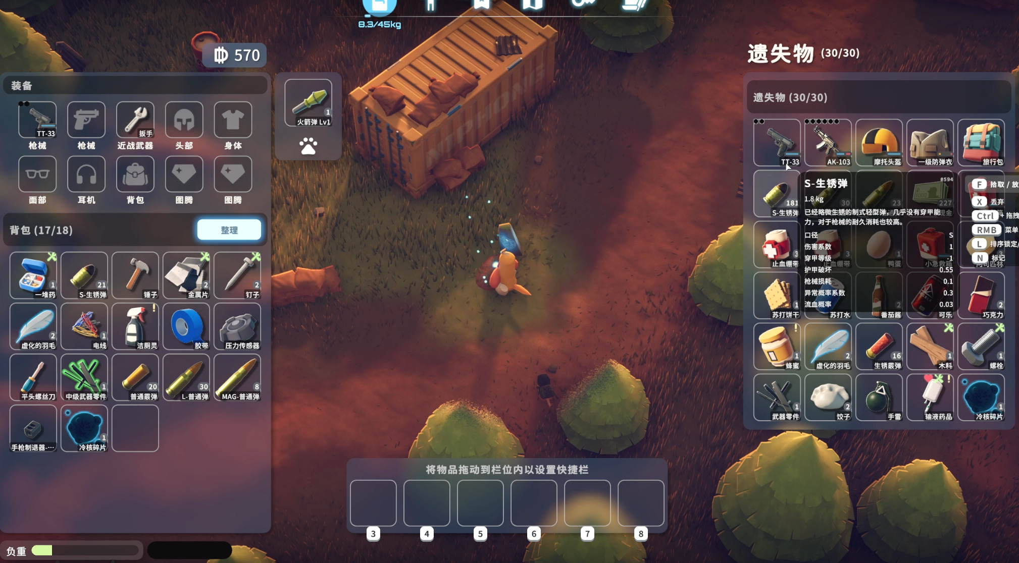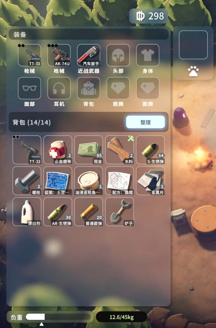 背包系统也相对应的做了足够的简化,玩家不必排列物品,而是每个物品都仅占据一格,不少物品甚至能够堆叠。虽然格子数量较为充裕,但玩家负重依然会成为鼠鼠玩家的阻碍。过重的负载会降低玩家的移动速度,超过承受能力甚至寸步难行。这时候,宠物背包的好处就来了,不仅在玩家死亡后物品保留,而且存放在宠物背包内的物品不会计算负重。这对于某些动辄20KG以上的道具来说无疑是最好的搬运工具。