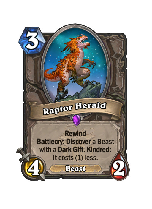 - 旧:战吼:发现一张具有黑暗之赐的野兽牌。延系:其法力值消耗减少(1)点。