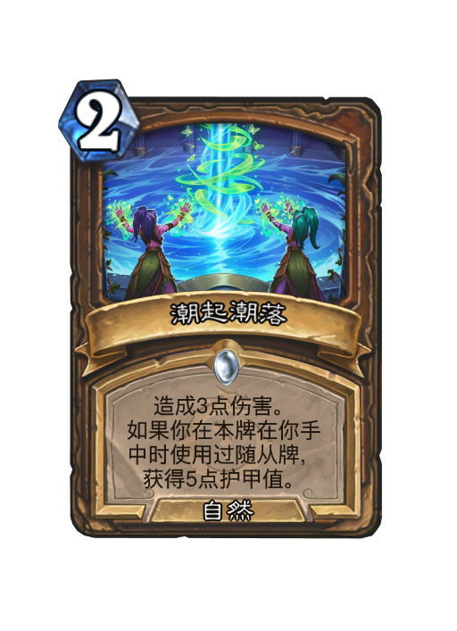 这张牌英文牌名Ebb and Flow,ebb和flow各指潮落和潮起,其中flow本意水流,有go with the flow(随遇而安,顺其自然)的俗语,所以趣文换成了ebb,随ebb也是流。