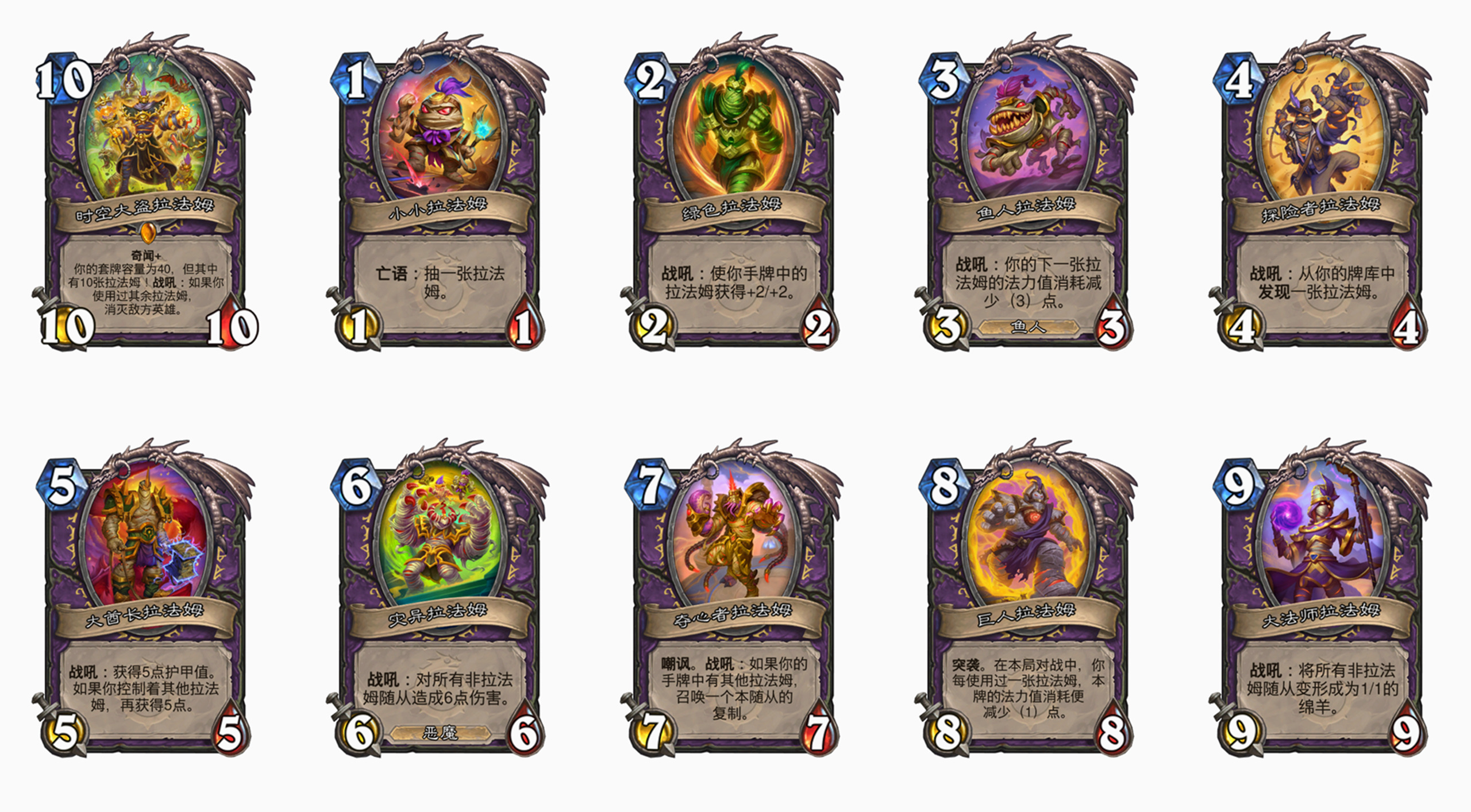 毫无疑问,时空大盗拉法姆是Leo的最爱。不同于其他魔兽经典角色,设计师对于其他时间线的他们也力求真实合理,而拉法姆则本来就是个丑角,所以正好用来淋漓尽致地展现时空穿越的怪诞。现实中Leo在和同事提出一套牌里全是拉法姆的设想时也被笑话了。