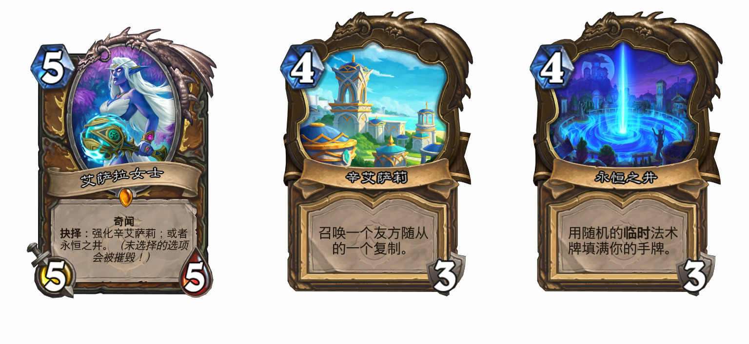同理于艾萨拉女士,德鲁伊有多张牌算是回望了沉没之城(正史中沉没了的辛艾萨莉)的探底机制,但也没完全复刻,就是为了既对应两条时间线的关键节点,又展现出两者的不同。