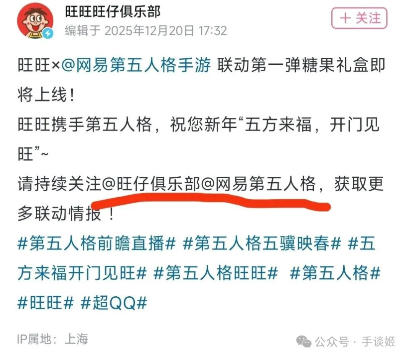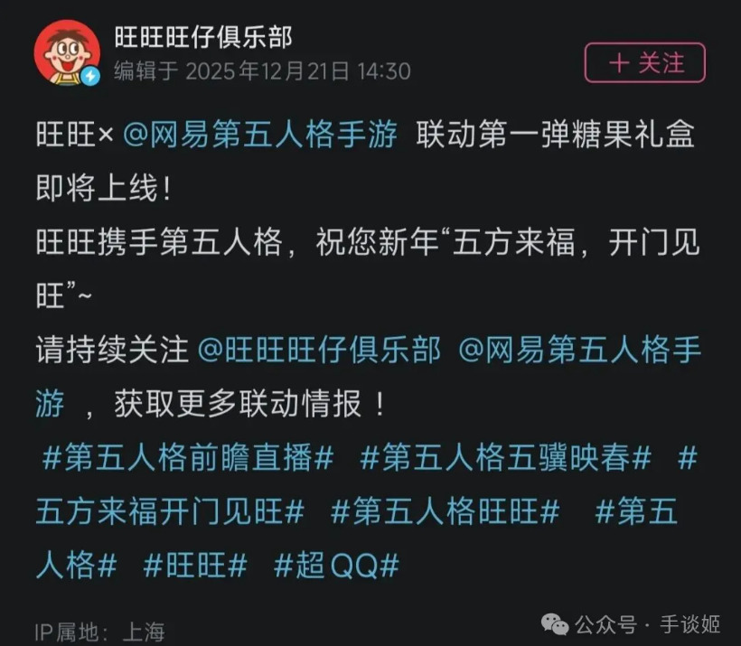 于是,在《第五人格》编辑动态之后,旺旺那边也编辑了动态。然而——