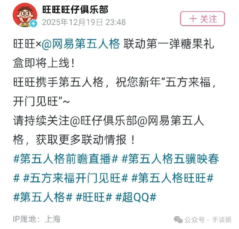 临近元旦和新年,无论谁都想讨个好彩头。作为逢年过节家家必备的送礼首选,旺旺自然成为了不错的联动目标。