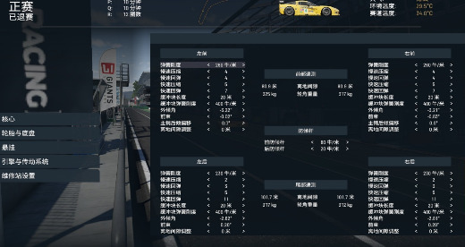 上面提到了频繁的高速碰撞(撞车、撞墙)会对车辆的外观产生影响,蹭漆、刮痕、引擎盖凹陷等等,成为叙利雅战损版风格,这些内容对车辆驾驶的性能也会造成影响。其实玩家在游戏页面,是可以看到各种车辆参数的,最典型的就是比赛时候的车胎情况,温度、压力、损坏等等。至于车辆的各种性能参数,核心、轮胎与底盘、悬挂、引擎与传动系统等方面的各种参数,看不懂一点,搞不明白,萌新表示懵圈中,不解释ヽ(゜Q。)ノ?