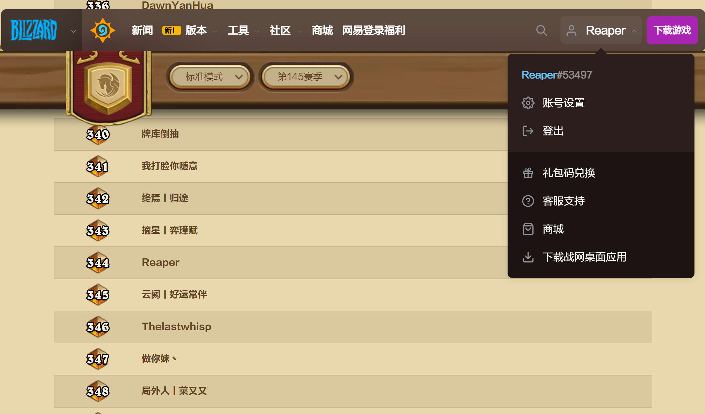 大家好,首先介绍下我自己,Reaper#53497,巨龙之巢版本入坑,一直专注于标准模式的杂技操作类卡组,曾在锁喉贼版本冲进国服前50,国服回归后由于理解下降、工作压力大以及没有擅长的上分卡组等原因,基本是佛系天梯,10月份更是掉出11星,在11月只能是艰难上传。但在“穿越时间流”版本和最近一次补丁上线后,一路冲到了国服344名,一切全靠我的上分神器——奇闻龙法。