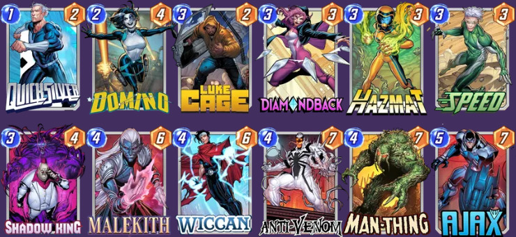 这套卡组在无限前(80-100)分段呈现出绝对的领跑态势,无限后却又几乎查无此人,很好证明了老卡组对玩家群体迫切上分的存在必要,虽然,但也依旧是当前环境中不可或缺的一环。作为一套一张不改也能玩到关服的卡组,构筑层面的事情就不多做赘述了,这里就额外提醒一点:有不少脑机玩家会携带【卢克·凯奇】用作防守,想要用减攻体系去抓的朋友请慎用。