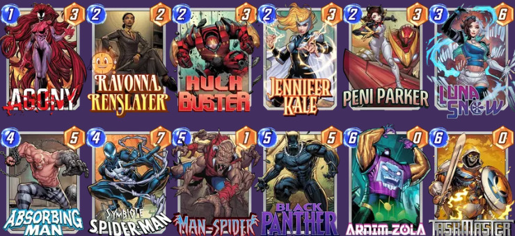 卡组核心:【人形蜘蛛】【黑豹】【阿尼姆·佐拉】【模仿大师】