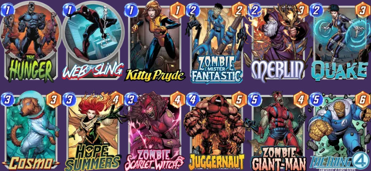卡组核心:【凯蒂·普莱德】【霍普·萨默斯】【丧尸猩红女巫】【丧尸巨人侠】
