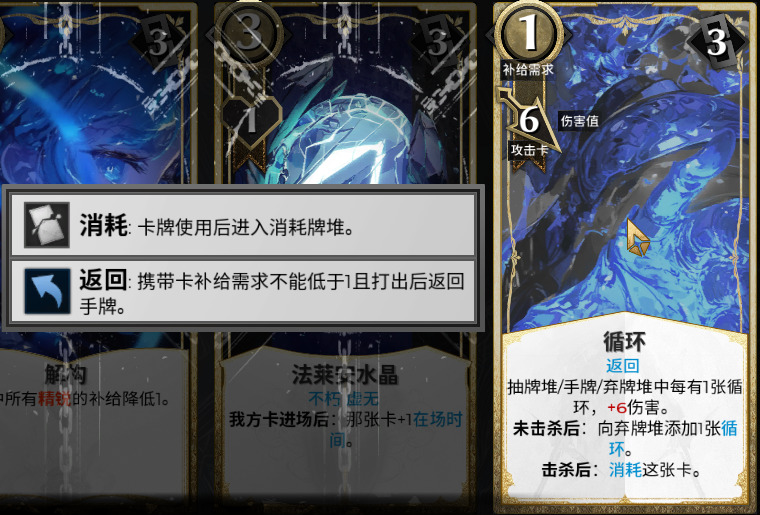 不断打出循环卡牌,获得循环,就能不断提升输出。精神控制在敌人要突破防线时进行控场,仅凭这2张卡就能应对大部分关卡。