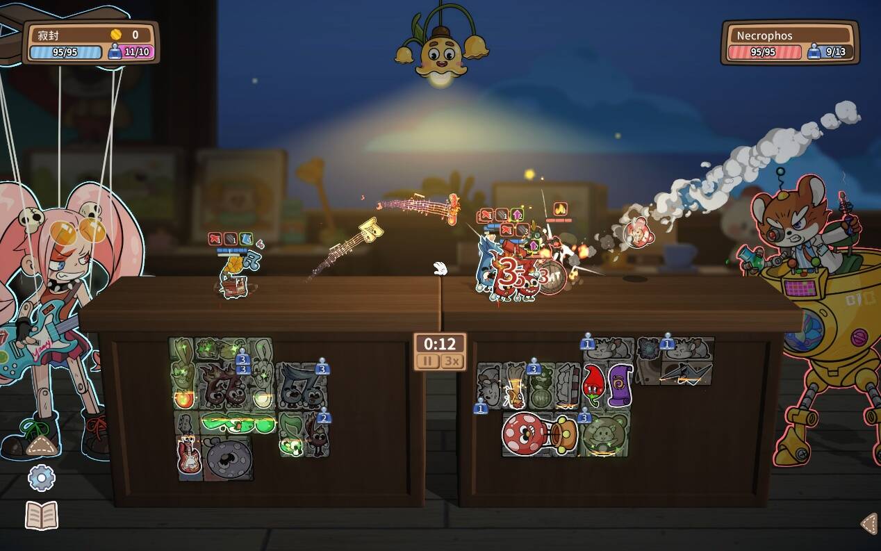 首先看结论,《玩具屋》的基本框架与常见的背包管理游戏相同,采用了随机商店+物品合成的核心形式构建核心策略,而物品设计上,则引入了相对特殊的召唤物道具,在固定时间后登场并自动战斗。这种非持续的生物战斗设计一方面很好的扩大了战斗的视觉表现,另一方面,则通过一次性和时间差构造了迥异于纯粹物品的设计体验。此外,本作去除了谜语性的合成暗示和合成的回合限制,并在商店等方面进行了分类处理,进一步降低了游戏的上手难度。