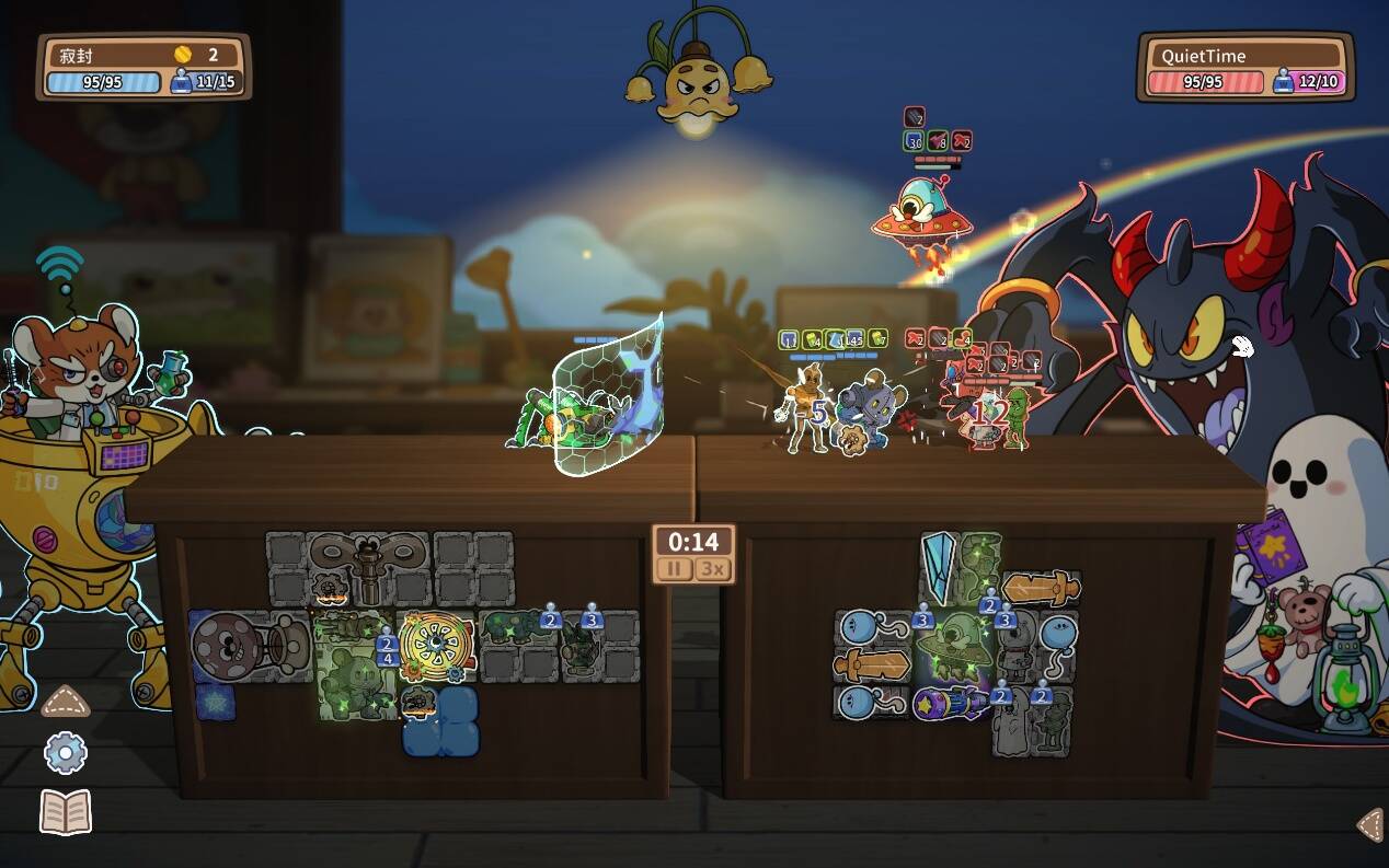 《咔砰!玩具屋》(后简称《玩具屋》)同样是一款具有背包管理要素的异步自走棋游戏,通过引入召唤物的形式,丰富了战斗形式的表达。在玩法上,则通过一次性的召唤物,多次召唤的建筑和持续生效的法术进行差异化,产生了围绕着时间与数量的特殊维度,一定程度上再次丰富了“背包管理”的范畴。