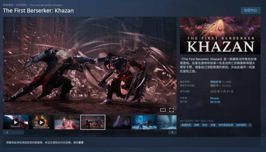 DNF世界观《第一狂战士:卡赞(The First Berserker: Khazan)》现已锁Steam国区,该作于2025年3月27日发售,整体评测“特别好评”,简体中文评测“褒贬不一”。