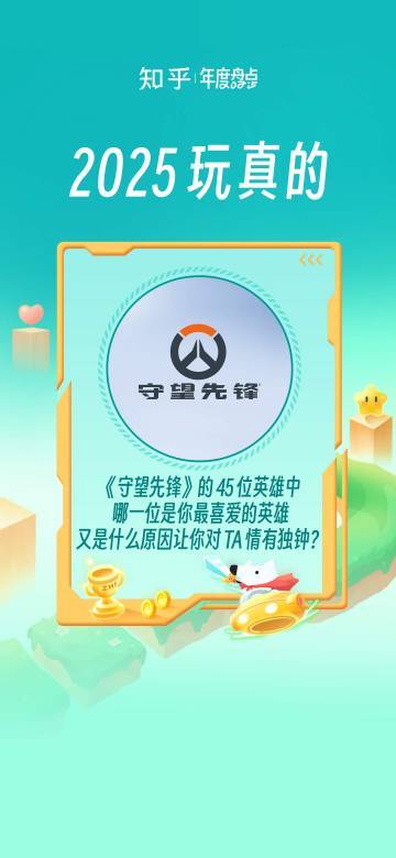 年末钟声即将敲响,知乎游戏发起「知乎 2025 玩真的」年终策划,邀请各位玩家一起聊聊:《守望先锋》的45位英雄中,哪一位是你最喜爱的英雄,又是什么原因让你对TA情有独钟?