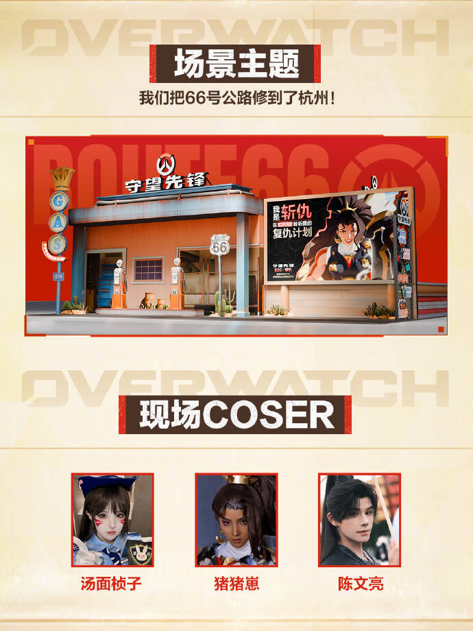 杭州的“66号公路”活动多多,无料多多!逛完66号公路,别忘了继续去守望先锋主题同人街道打卡哦!“守”秀即将上演,这个周末,我们杭州大会展中心见!