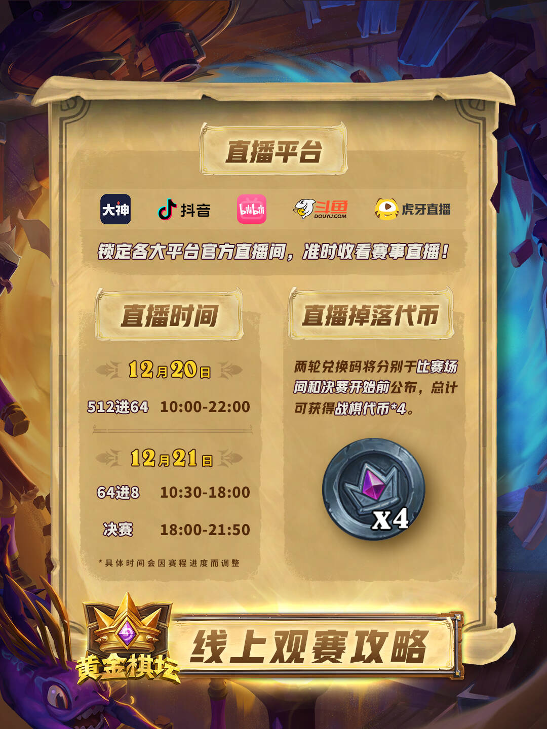 这次观赛奖励不再是掉宝,而是兑换码形式,比赛期间分两轮公布,共计4战棋代币。