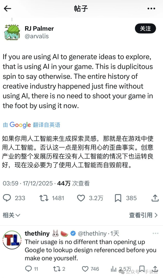 此外,尽管目前尚无厂商公开承认,但从当下AI辅助编程(vibe coding)的成熟程度来看,即便不涉及美术和文案,至少在代码层面,AI的应用恐怕早已在游戏行业中相当普及。