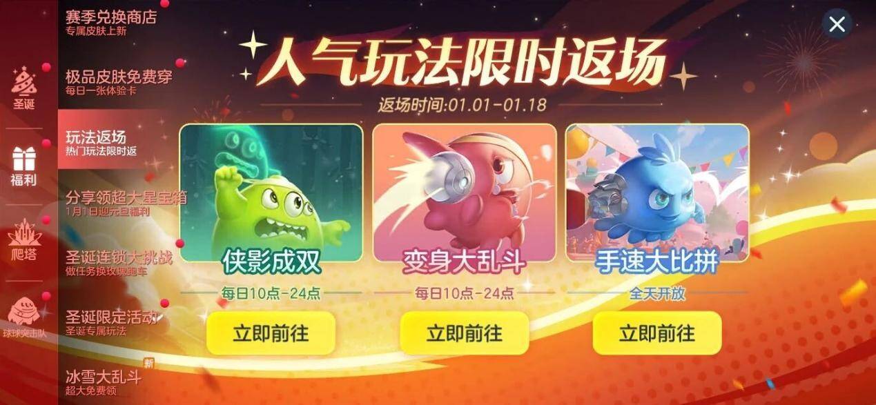 1月1日至1月18日,三大经典玩法限时返场:
