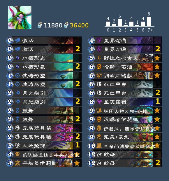 如果卡组有乐队经理精英牛头人酋长 或 奇利亚斯豪华版3000型 ,则详细卡图底下会显示相应的卡。