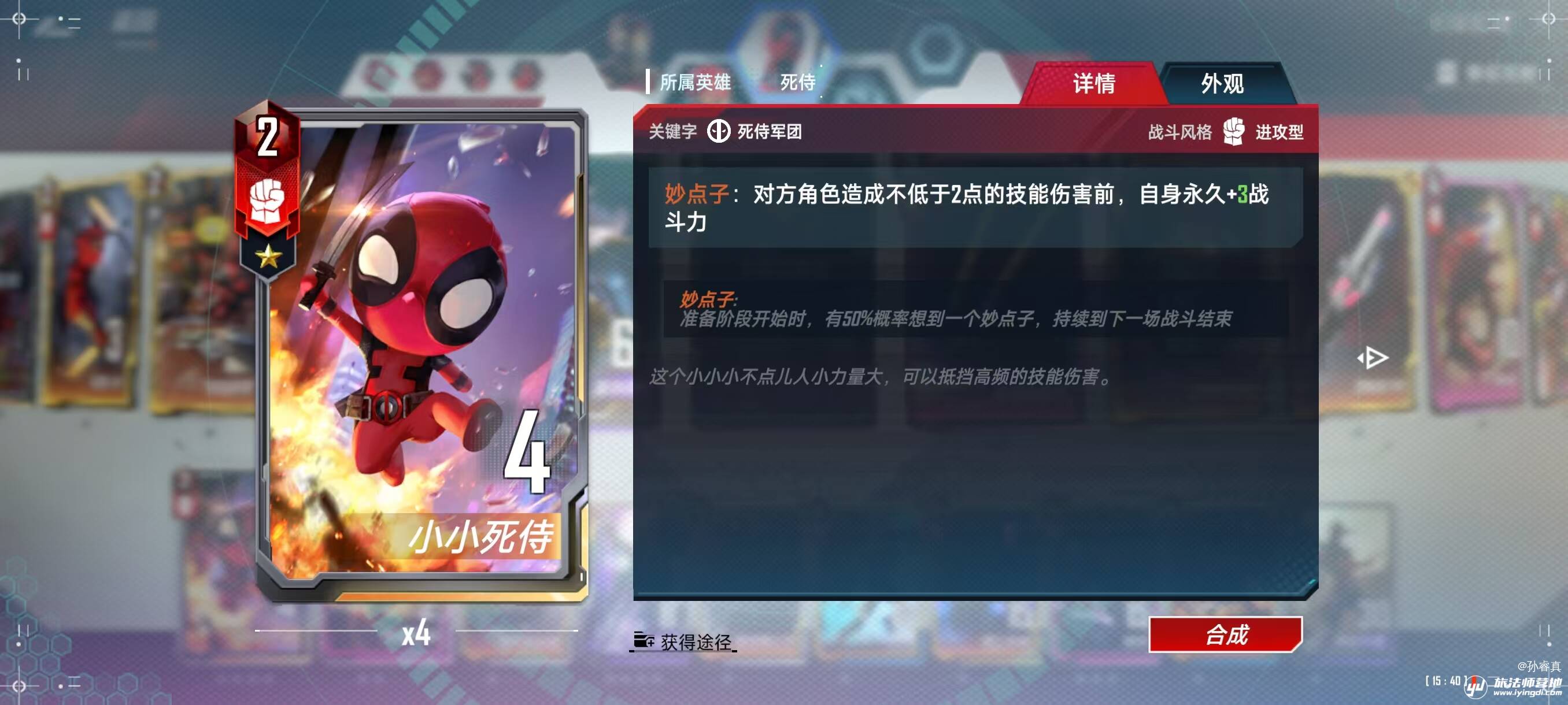 小小死侍,可以吸收巨量的技能伤害,对付本赛季热度不错的逆转凤凰+逆转暴风女很好用(我才不是因为玩逆转凤凰+逆转暴风女输的很惨才想着带小小死侍把别人的伞也撕烂)
