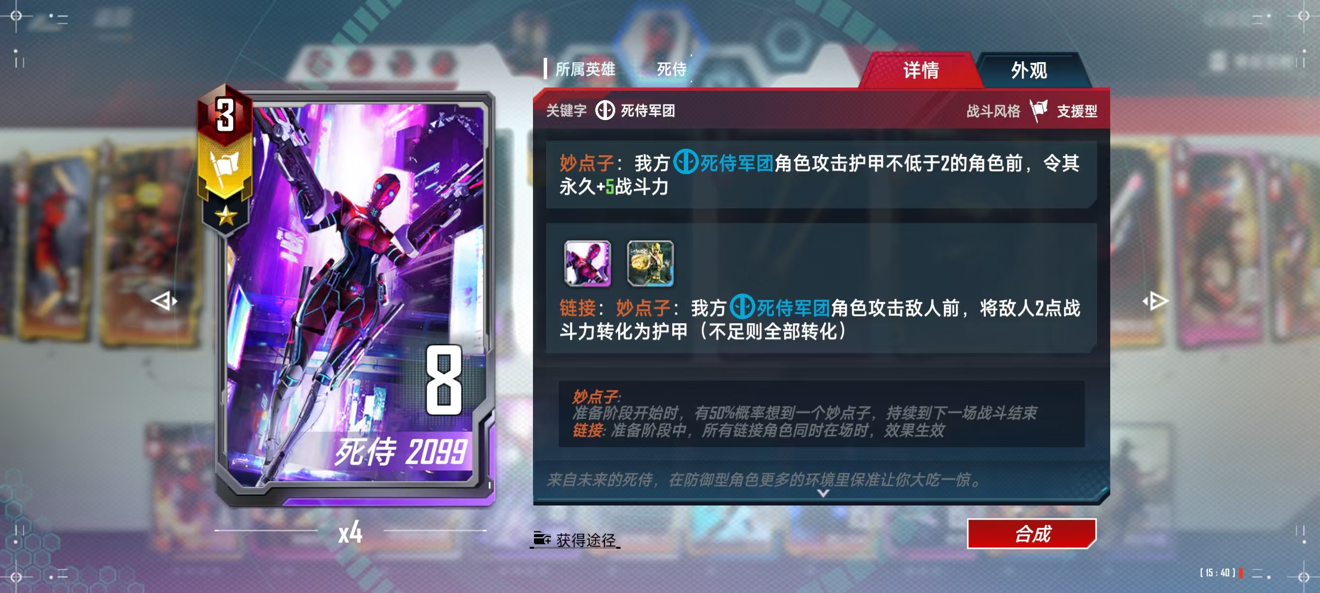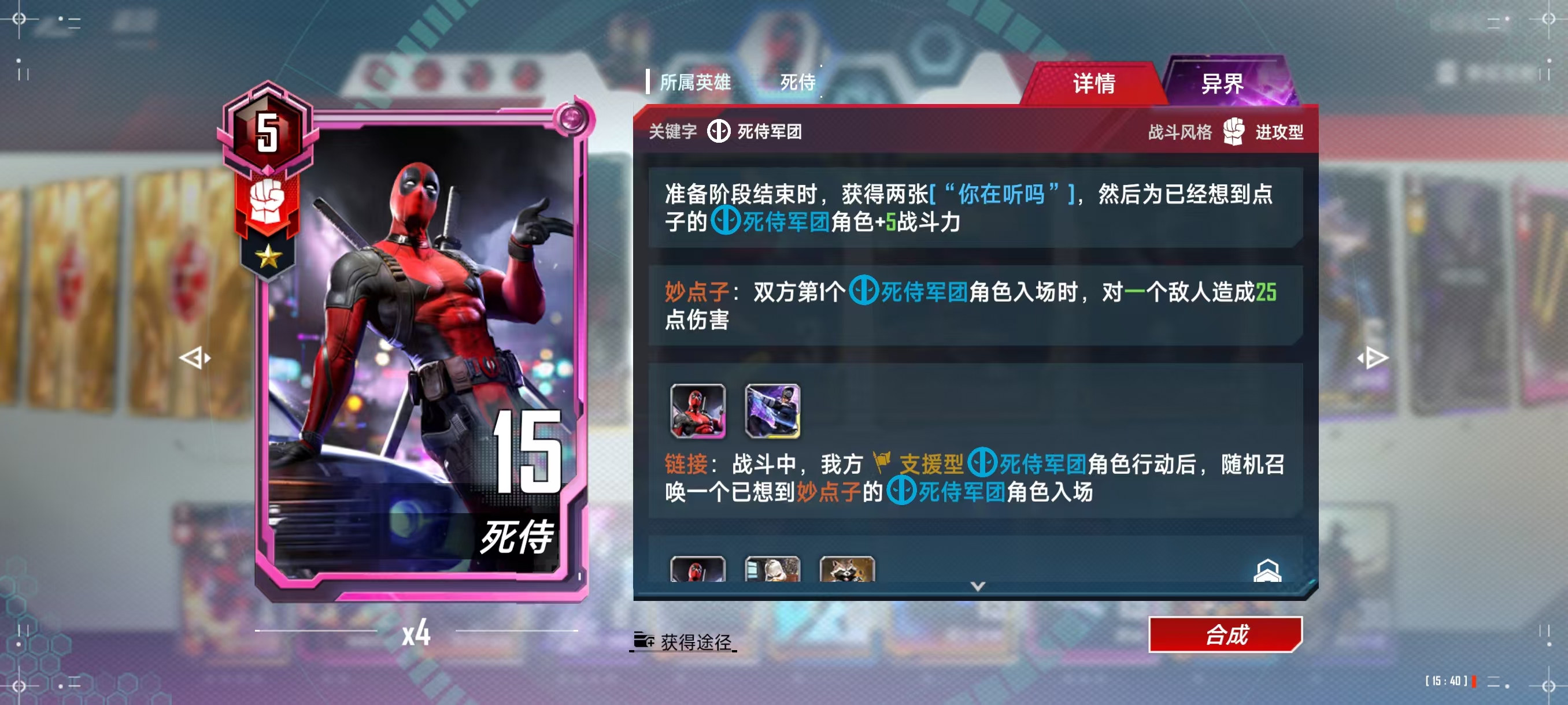 死侍2099,链接必开,激活妙点子后可以稳定触发加战力的技能,并且只要对手战力+护甲总和大于20即可触发天才点子的巨额战力加成,非常好用(如果稳定激活妙点子/天才点子的话)