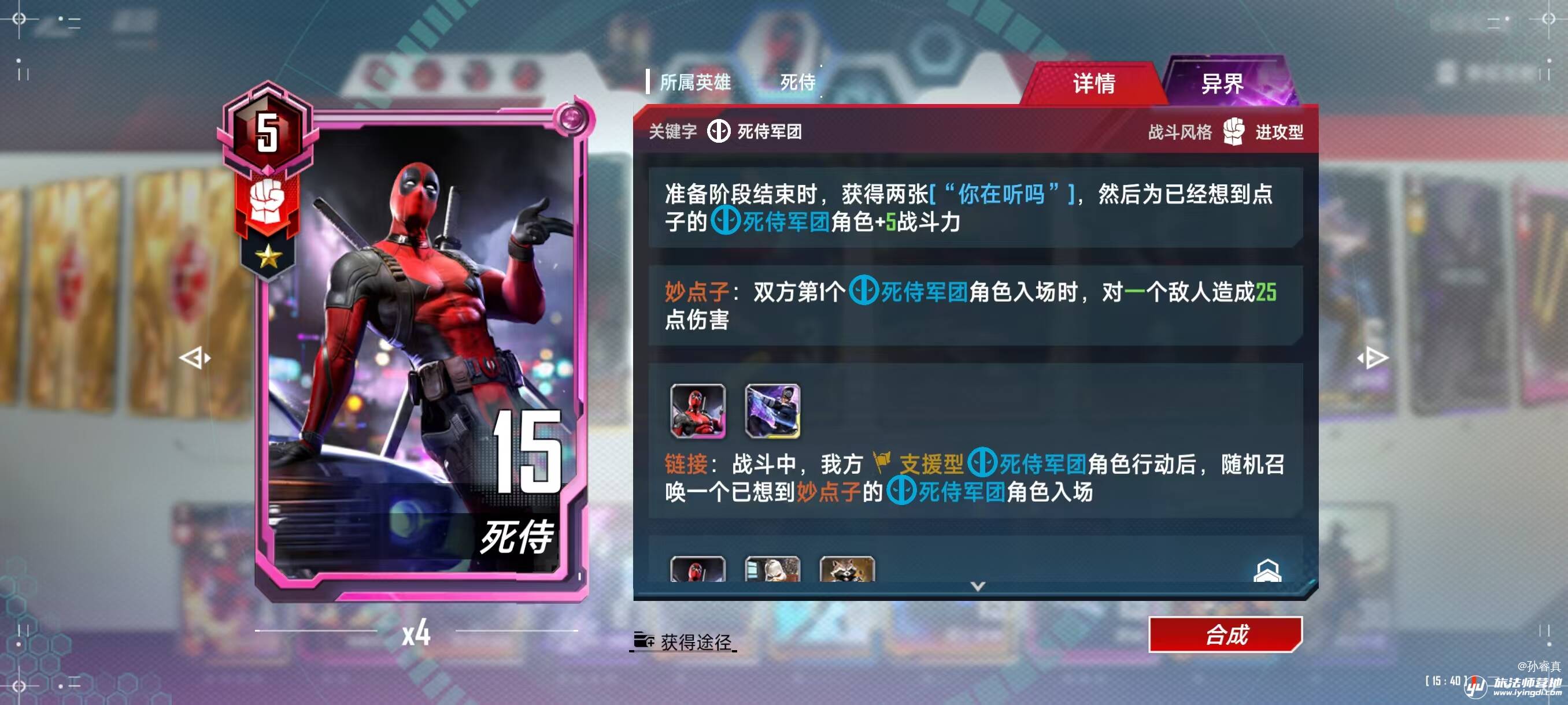 异界死侍,2+1即可每回合提供四张“你在听吗”,保证死侍2099和小小死侍稳定激活天才点子。