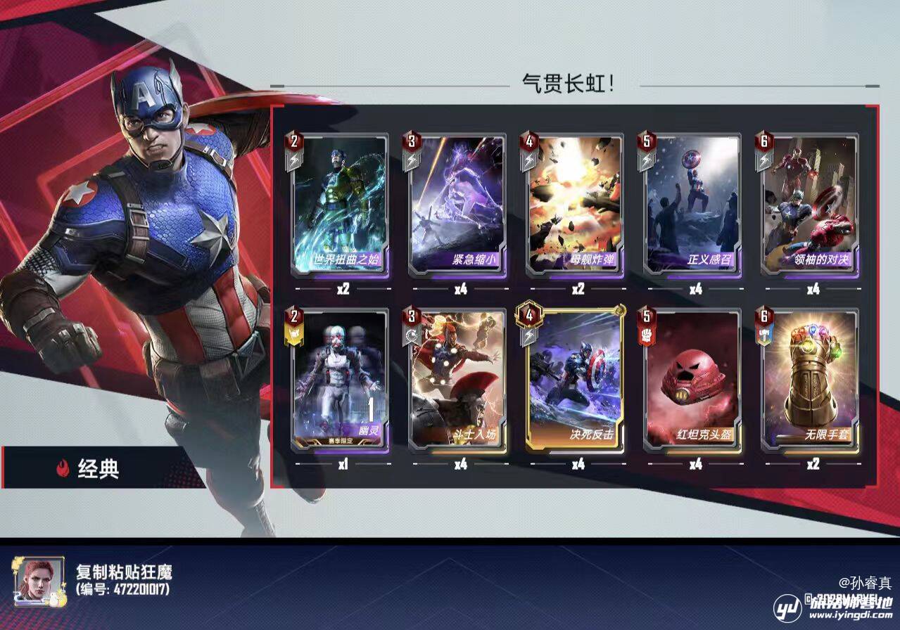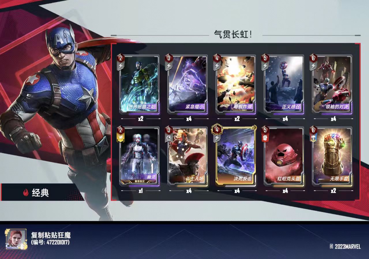 六费:无限手套,打不过了搏一搏,领袖对决用来对付大身材单核卡组(一般就是对付特别胡的异界虫子,其他情况下如果领袖对决是把对面变1,那大概率我方所有角色加起来没他两个大)