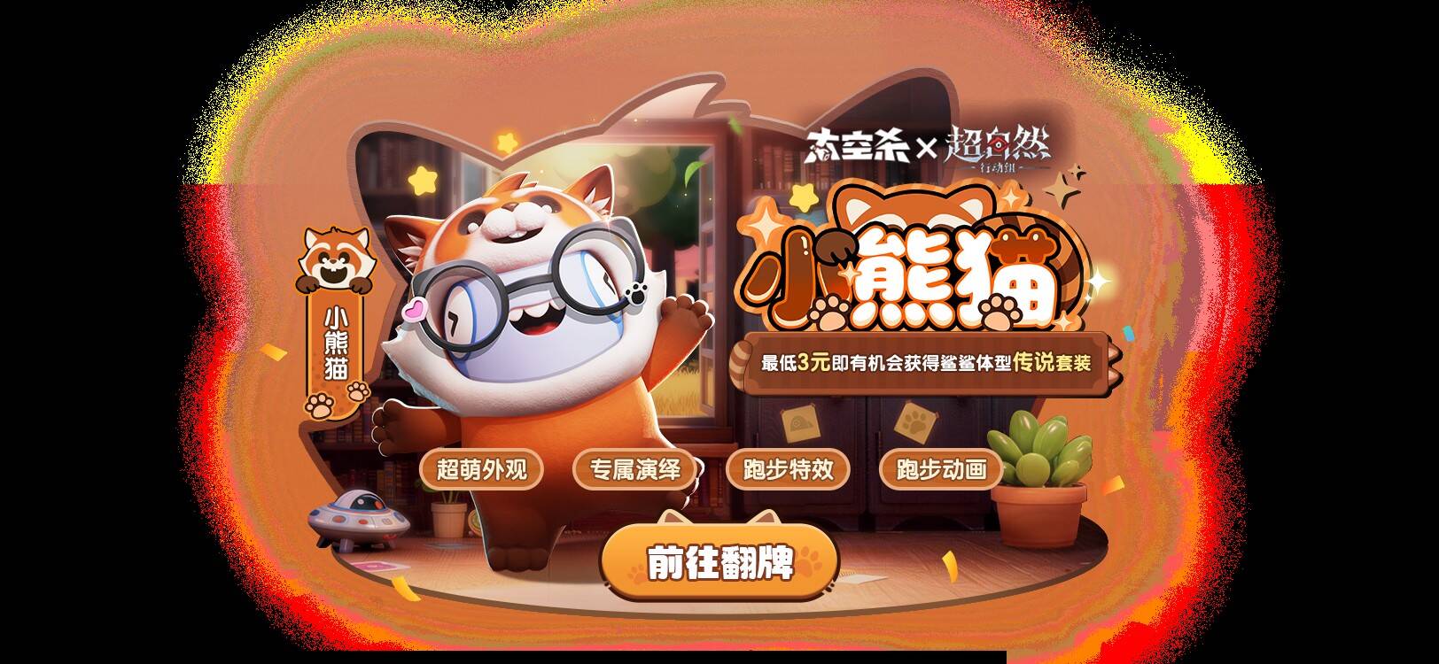 全新联动套装【小熊猫】软萌上架!首抽仅需3元,即有机会斩获这套传说级外观,让你的太空之旅可爱度飙升。
