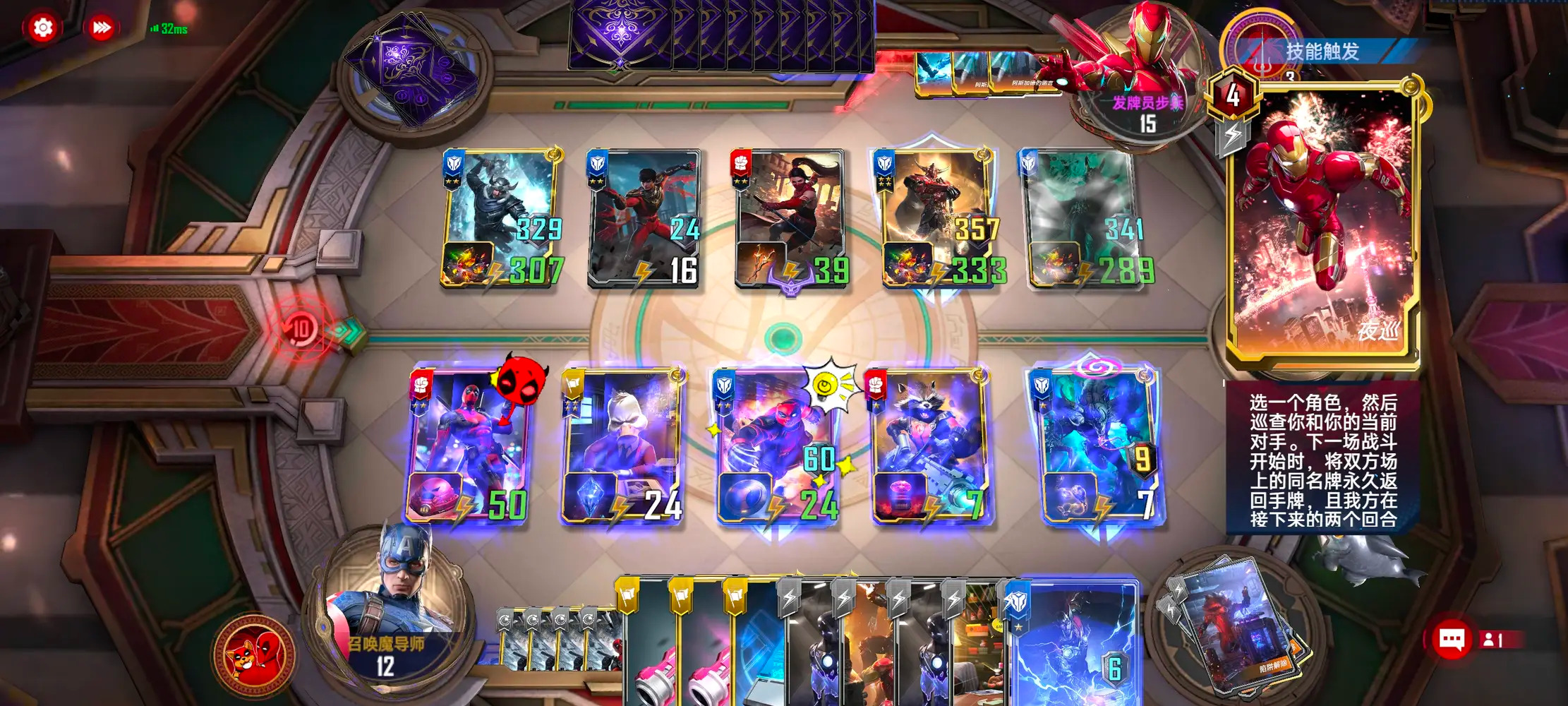 如果有夜巡单位就把守护卡卖掉,给熊猫带盾