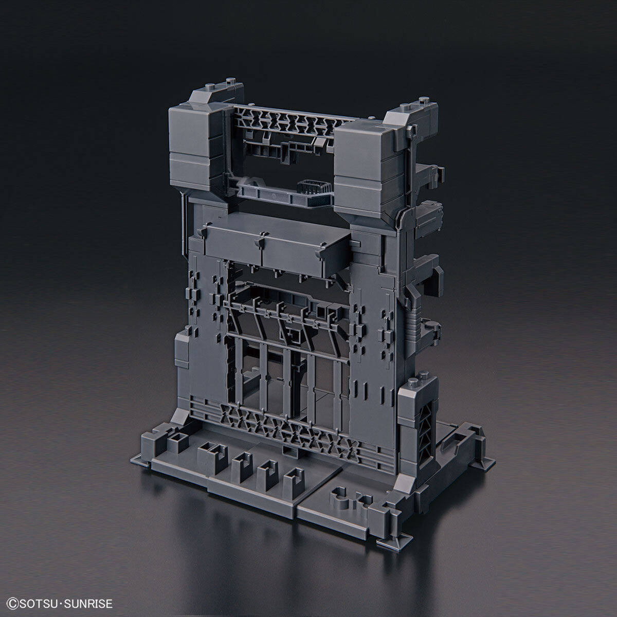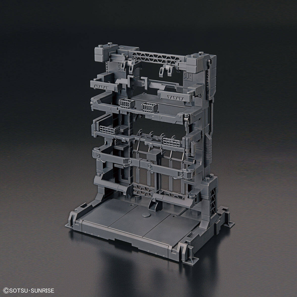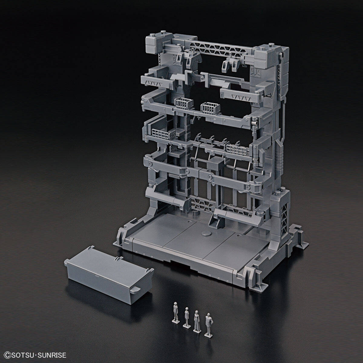 剧中登场的独角兽高达用整备架,再现了对应驾驶舱门开启时的机械臂形状,整备架背面可放置各种装备,并附属了可收纳细小零件的收纳盒。