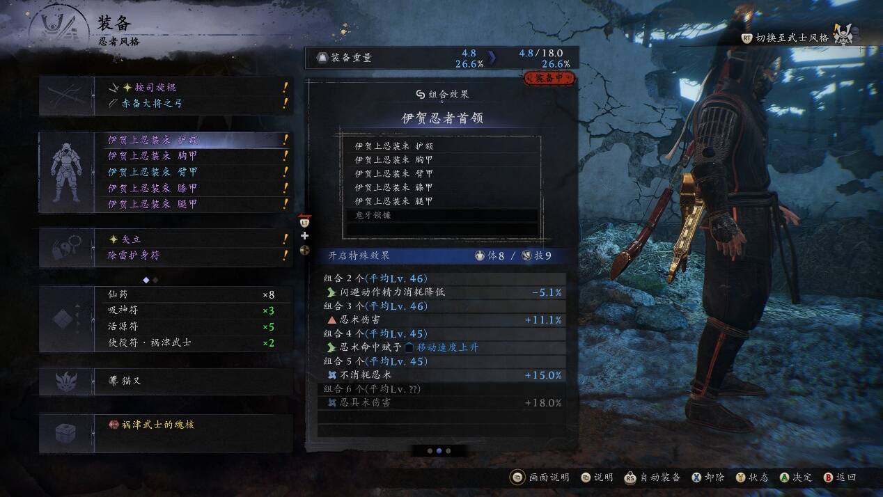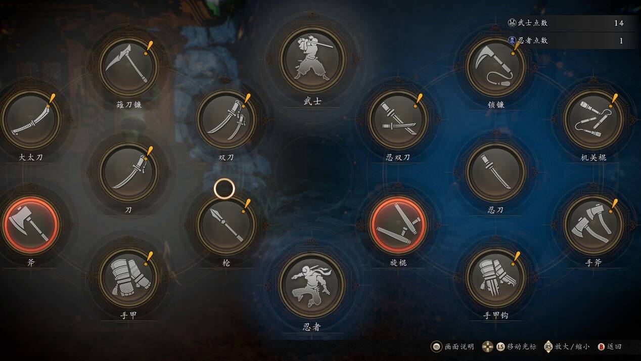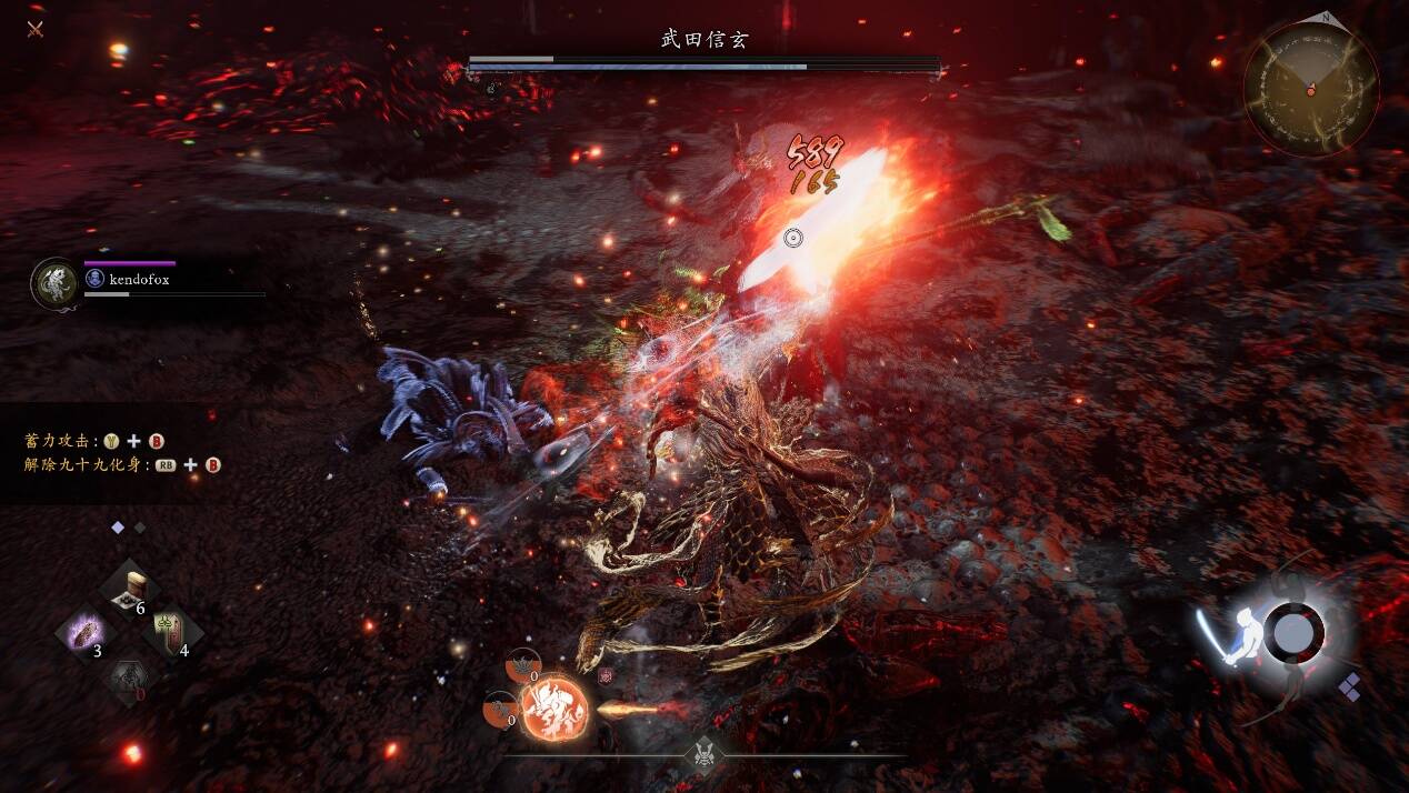 游戏也提供了“转心“的操作联动两个形态,当怪物打出特殊的红光大招时,通过瞬间切换职业玩家可以打出大量的伤害并打断敌人的技能。不过这并非是双职业设计最大的巧思,真正联动两个模式的,是忍术条和琢技条的特殊设计:在任何形态下,都能积攒本身和另一个职业的能量。这并非是共用能量,而是同时累计。因此一向困难的流转系统,从必备的操作转而成为一种拔高上限的动作模式,老玩家依然能打出华丽的”无限“操作,新玩家也得以通过切换形态偷出大量的体力,逐渐入手这套深入而复杂的战斗系统。有趣的是,忍者形态不仅没有削弱《仁王3》的动作模块深度,反而提供了循序渐进的理解过程,和更连贯的动作上限。