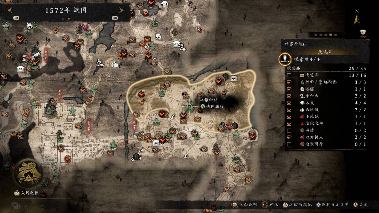 更为让人惊喜的是,《仁王3》的主线体验流程中,完全不包含“终局“的刷取过程。在”时空穿梭“的新背景下,每个大地图玩家都有20+小时的战斗体验,在进入真正的终局(解锁神器级武器)之前,就有超过70小时的战斗和收集内容。而开放,但是不空旷的地图中,则充满了各种类型的奖励,也衍生了全系列最复杂的养成结构。