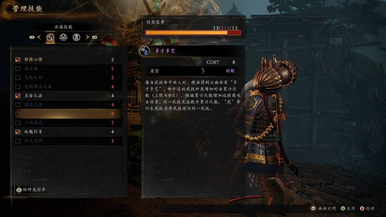 守护灵系统得到了拓展,通过灵力这一独立资源和九十九化身(变身)的设计,玩家拥有了全新的爆发和反击手段。尽管在技能优先级上,由于系统的拓展灵技的优先级进行了降低,但是该系统依然贯穿了全局的故事和探索流程。