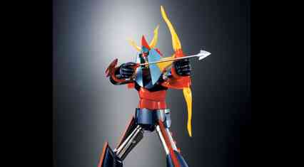 この「DXフェードインセット」では、劇中のフェードイン時のシチュエーションを再現できる、ライディーン神像、神面岩(開閉式、神像収納可能。全高230mm、収納時全幅215mm、展開時全幅330mm)、そしてひびき洸が搭乗するスパーカーがセット。通常版に付属する主要武器やブルーガーに加えて、ヘッドカッターやゴーガンソード等の強化武器も付属します。ライディーン本体は、上腕部と大腿部がパールホワイト塗装となっており通常版と異なります。
