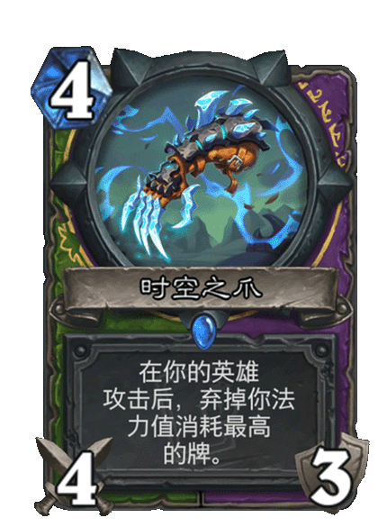 时空之爪:务必满编的神卡,可能带2有时候第二张出不去,但依然要满编保证上手率。有没有这张卡很多情况下是两套卡组,前期顺(比如先手12费有事干)情况下要留,后手甚至可以考虑裸留。