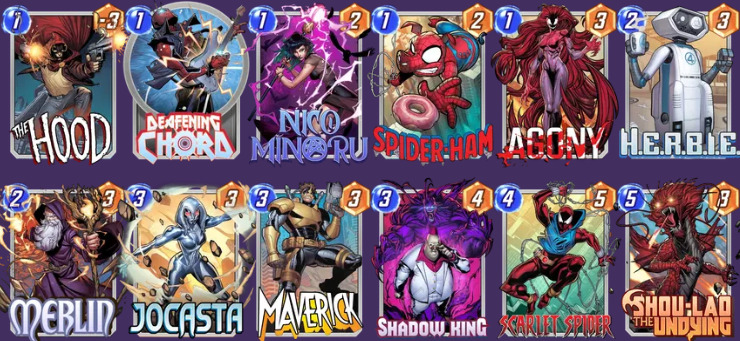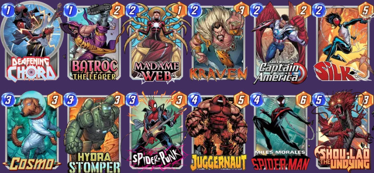 卡组核心:【蜘蛛夫人】【克莱文】【二代美队】【不死者寿老】