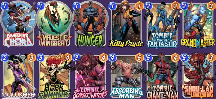 卡组核心:【凯蒂·普莱德】【丧尸猩红女巫】【丧尸巨人侠】【不死者寿老】
