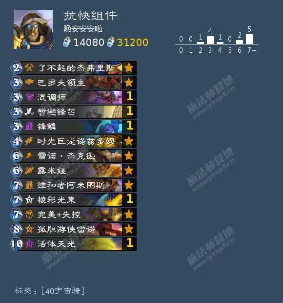 第一个赢点:前期有2/3/4费的对局可以和快攻抢节奏,由于这套带了光环,可以用怪抗住弹幕,活到中期雷诺下去已经结束了。